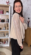 Blouse col froncé à manches sequins doublure viscose.