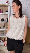 Top fluffy pailleté sans manches col rond.